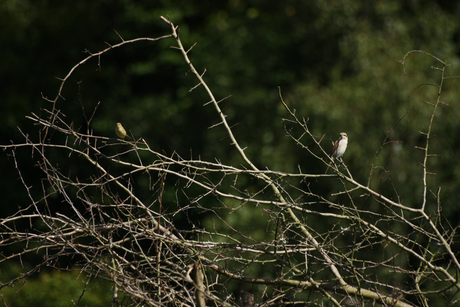 L'un des miliciens se montre plus hardi et se lance vers le buisson. Aussitôt un oiseau tombe du ciel, s'empare de la souris et l'épingle sur le buisson. Nous venons de tomber sur le garde-manger d'une pie grièche écorcheur (voir là et là).